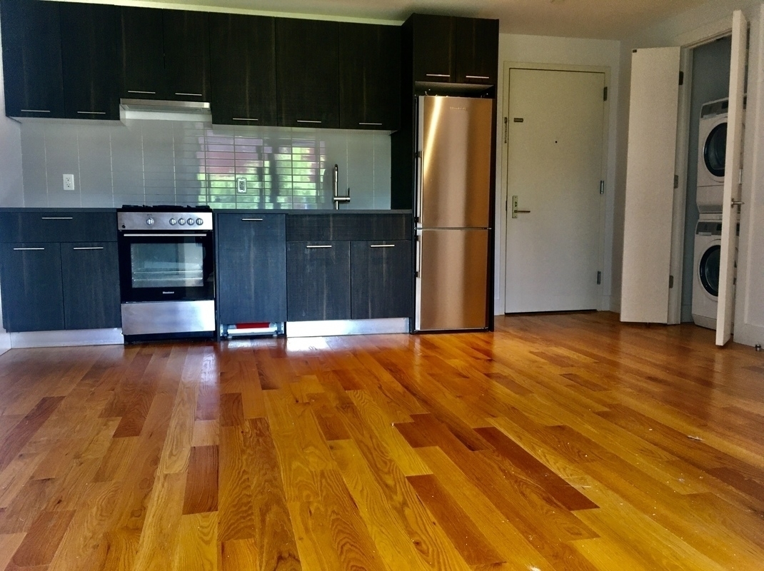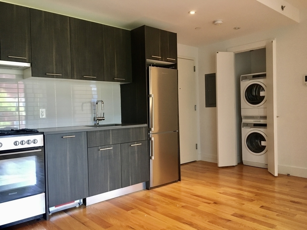 Neighborhood: WilliamsburgNew Constructed Development in Williamsburg, Brooklyn Take your pick of studio, one or two bedroom units, beautifully appointed with light hardwood flooring, oversized windows for maximum sunlight and central heat and air conditioning. The kitchen features upscale finishes and stainless steel appliances, including dishwasher. Each unit has its own washer and dryer. Cooking gas is included and pets are welcome. Building amenities include: a 13 rack bike room, garage parking, a 3rd floor common area and access to the huge rooftop with amazing 360 degree views of Manhattan and LIC. Located on a tree-lined street just 4 minutes from the Montrose L and less than 10 minutes to the Lorimer J,M and Broadway G lines. You’ll find everything you need – from groceries to vintage clothing to CrossFit close by. Enjoy exploring local hotspots like Champs Diner, Sweet Science, duckduck and Dun-Well Doughnuts or take a 20 minute ride into the city for unlimited choices.